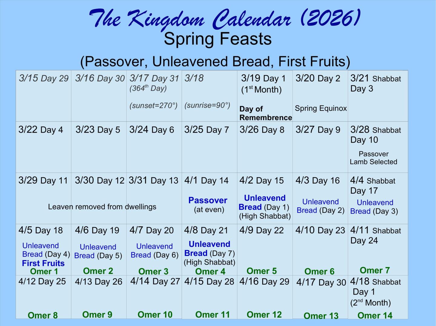 The Kingdom Calendar has been verified to be in complete harmony with the multiple Scriptural calendar related witnesses (specific and implied) that are found in: Genesis; Exodus; Jubilees; Numbers; Leviticus; Deuteronomy; Ezekiel; Daniel; Malachi; Matthew; Mark; Luke; John; Acts; 1 Corinthians; and Revelation (many of these witnesses are shown in “Lost Calendar and Found”, Part 3 of the “In Search of… The Lost Calendar series).
