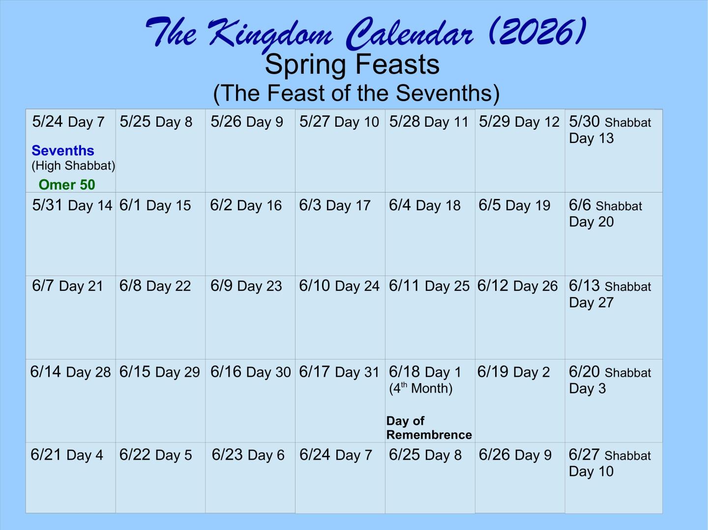 The 2026 calendar can be downloaded as a pdf file here: The Kingdom Calendar (2026)